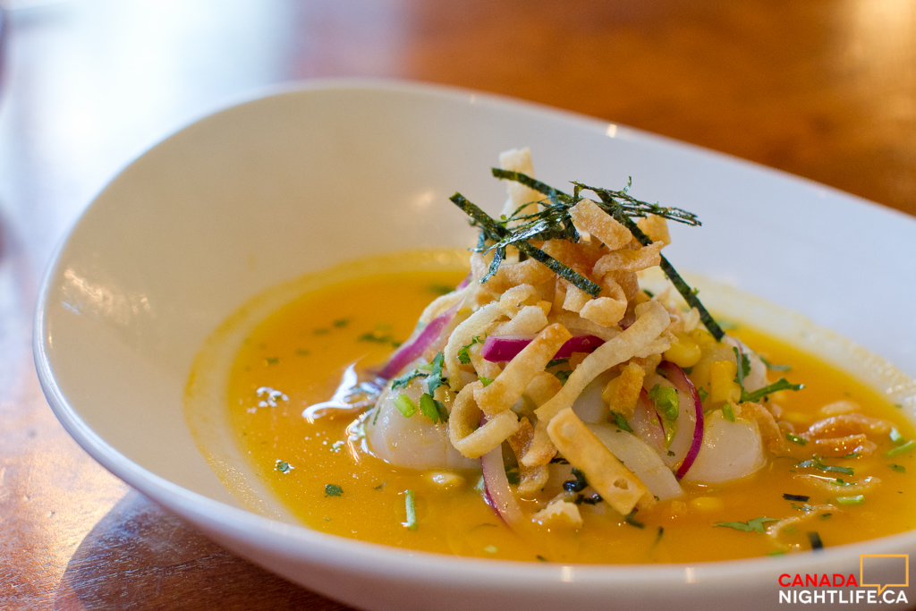 Scallops with an aji amarillo sauce, which is a south american yellow pepper. It brings a nice heat to the dish without it being overpowering, allowing you to taste the other spices and components.