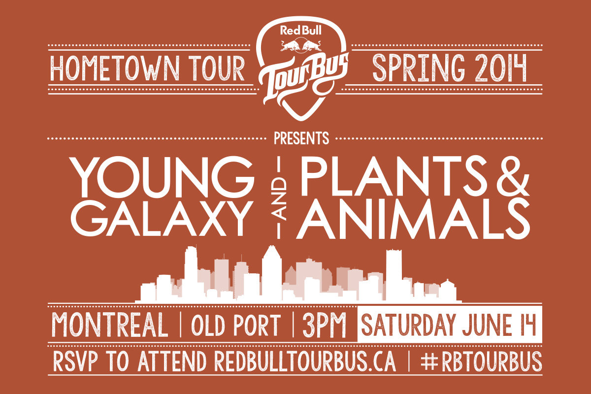 This Saturday June 14th, the custom-made GM bus will stop by Montreal and turn into an outdoor stage to welcome Young Galaxy, as well as Plants & Animals.